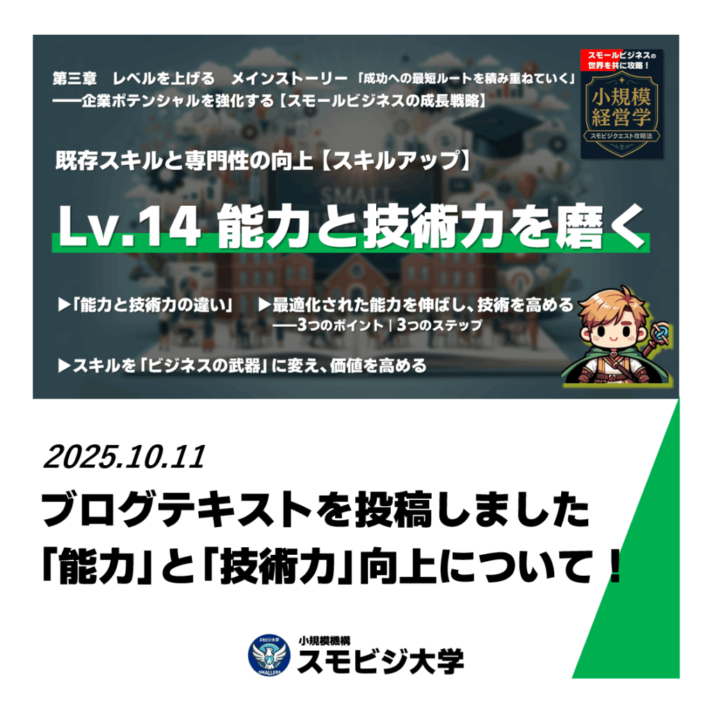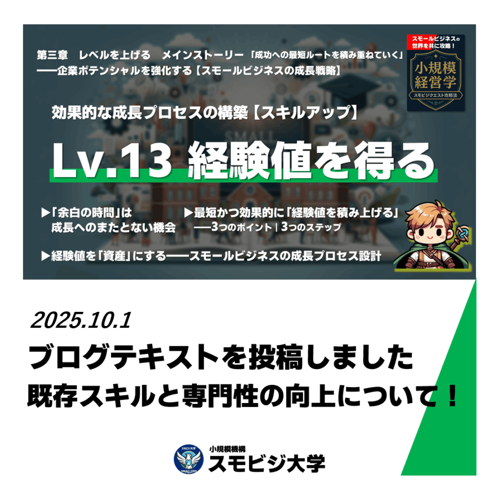 「スモールビジネス起業/副業を考えている方、すでに経営を担っている小規模企業のリーダー、現場を支えるチームメイトやスモールビジネスサポーター、そして『経営する力』を高めキャリアアップを目指す すべての人へ」