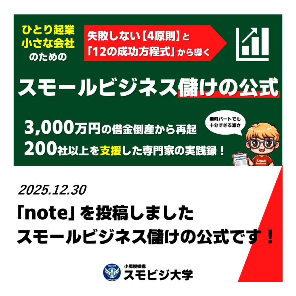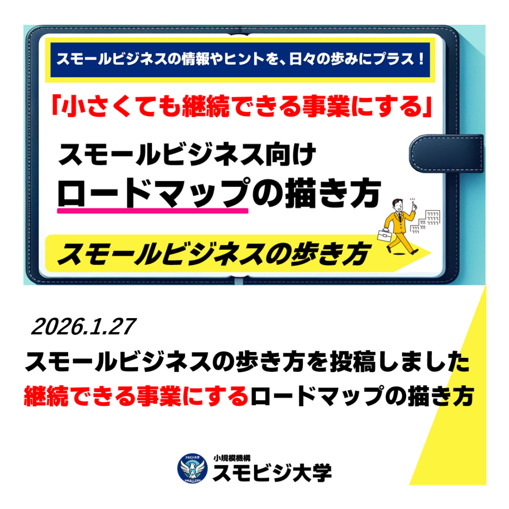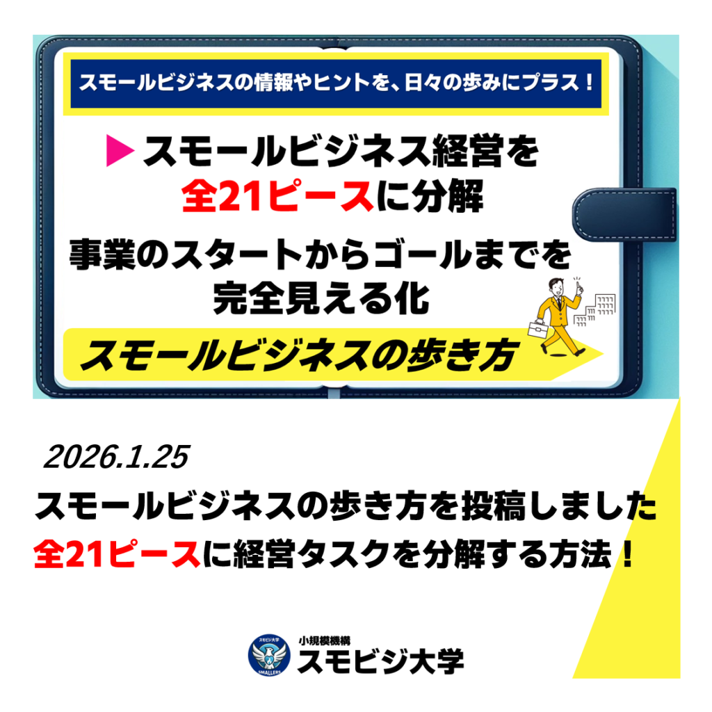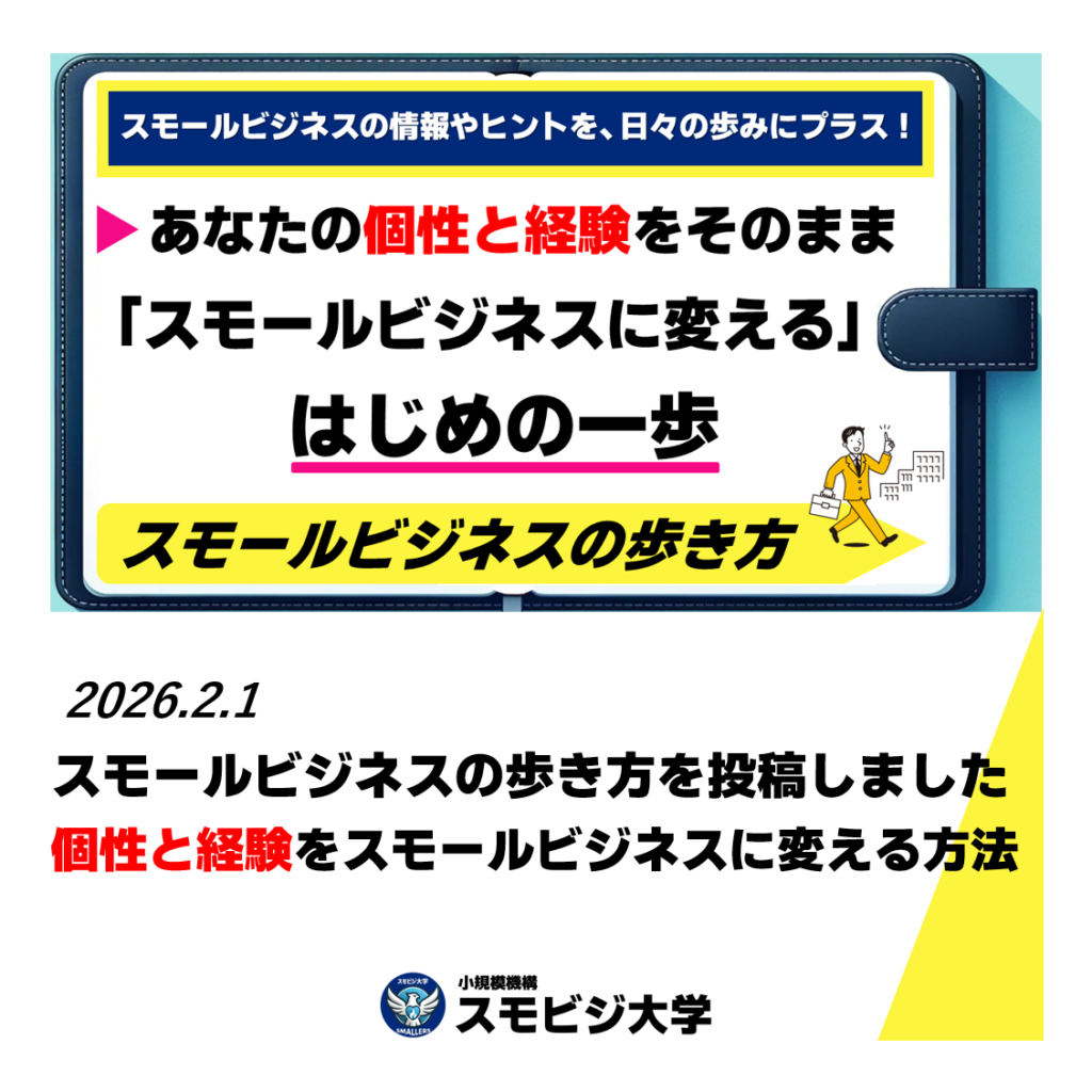 - 起業・副業前にスモールビジネス経営を実践的に学びたい →「SMBA/小規模経営学修士」へ