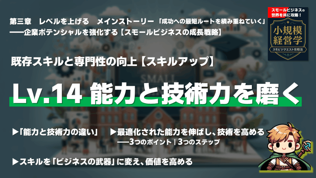 Lv.14 能力と技術力を磨く/既存スキルと専門性の向上【スキルアップ】|小規模経営学