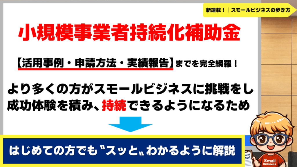 新連載スタート│世界一やさしい「小規模事業者持続化補助金」徹底ガイド【活用事例・申請方法・実績報告】までを完全網羅!【スモールビジネスの歩き方】
