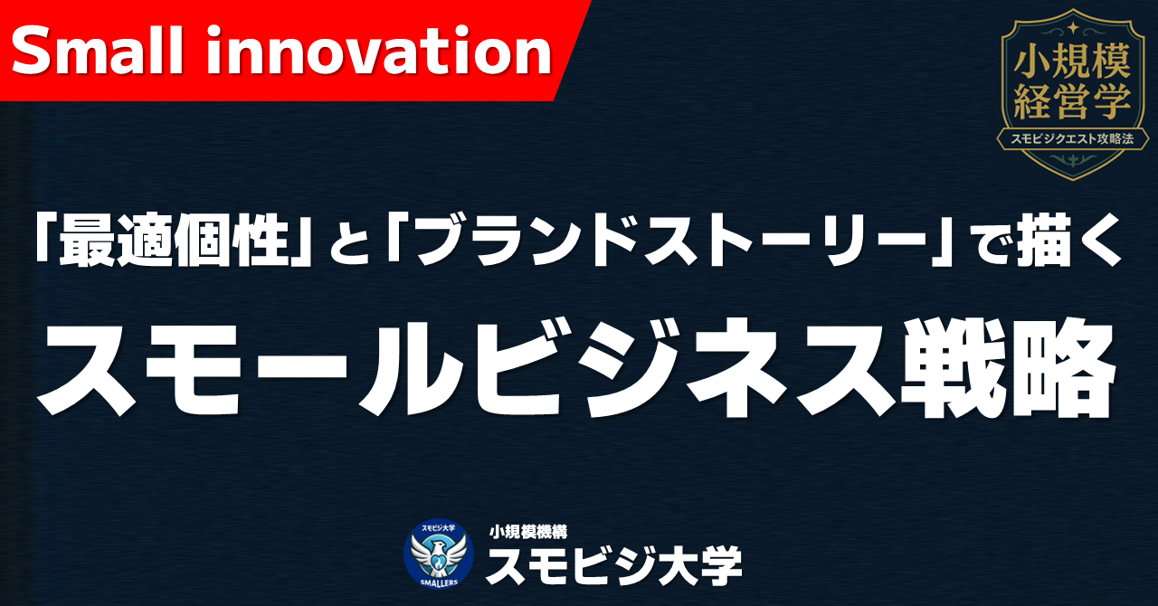 スモビジ大学では、この『小規模経営学』を通じて、「強く 聡い」小規模経営者や、スモールビジネスを支援できる専門家を育成・輩出し、経営者が自己の能力を最大限に発揮し、社会に貢献するための環境を提供します。