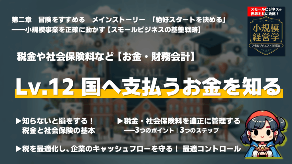 見出し 知らないと損をする! スモールビジネスの税金と社会保険の基本【スモビジは税魔王も倒す旅】 税金・社会保険料を適正に管理する──スモールビジネスの必須ルール──…