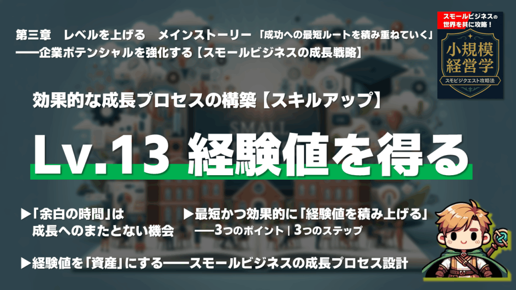 Lv.13 経験値を得る/効果的な成長プロセスの構築【スキルアップ】|小規模経営学